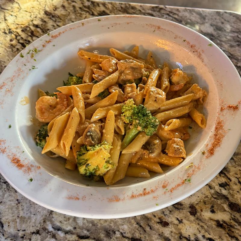 Penne pasta tossed with our homemade alfredo sauce • Add: Chicken +$4.00 | Shrimp +$6.00