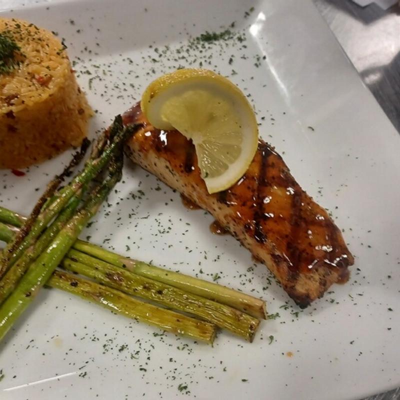 Glazed salmon with our house-made bourbon sauce on the side.