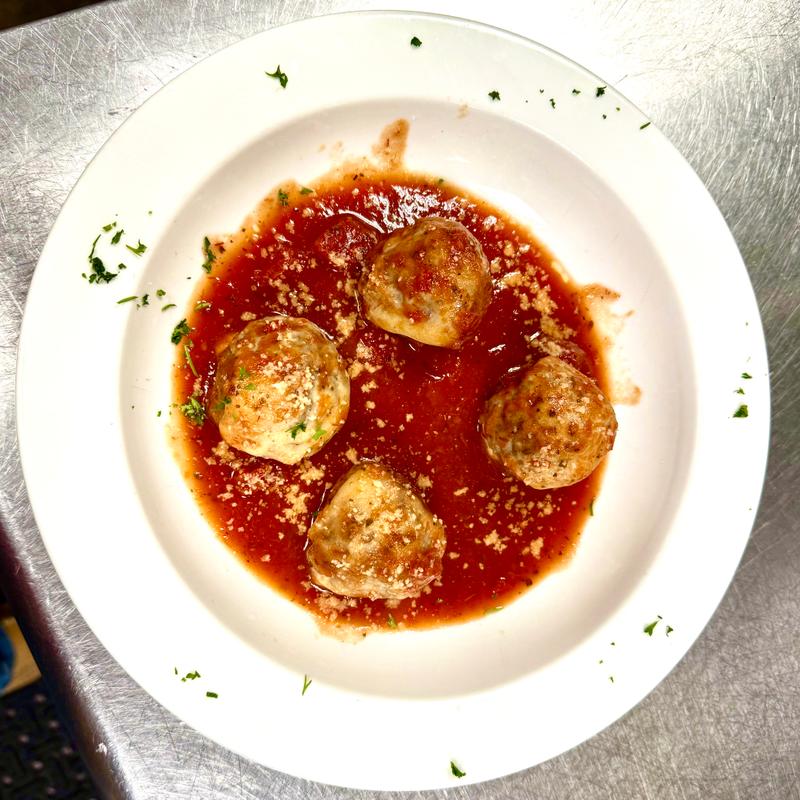4 Meatballs topped with mozzarella cheese served with marinara sauce